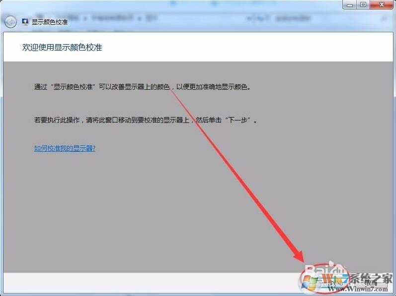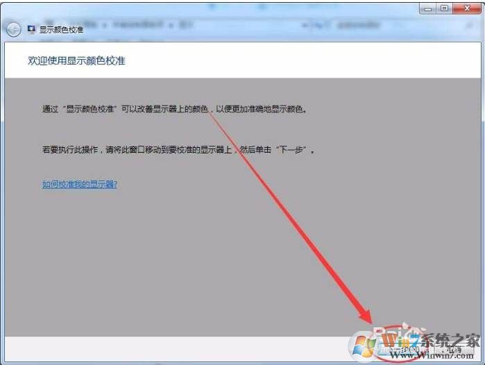 4、出现显示颜色校准欢迎界面后,单击下一步按钮。