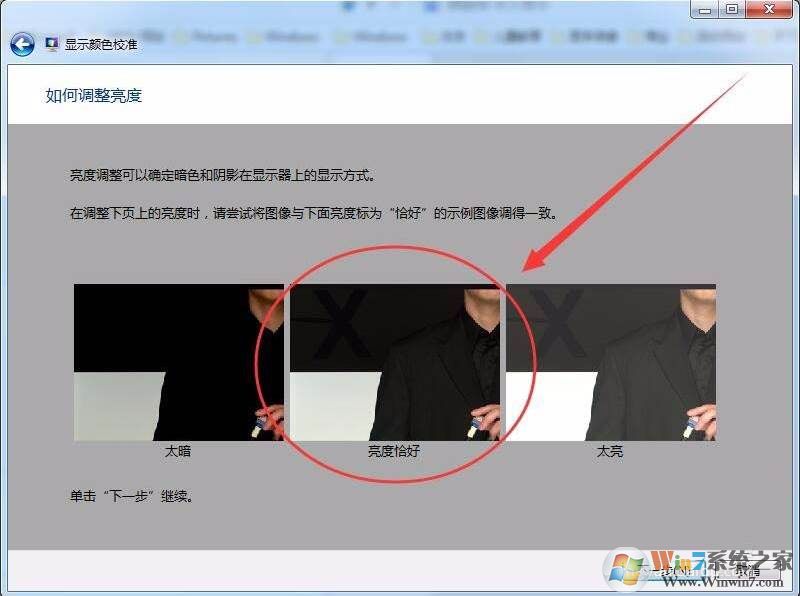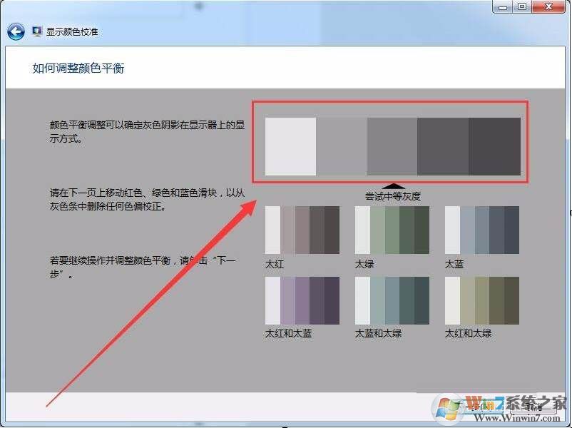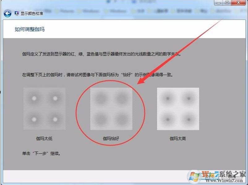 7、接下来调整伽玛色,需要调整显示器显示与中间的画面一致,单击下一步。