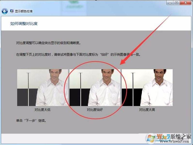 11、根据提示的中间图片,在调整对比度窗口中,将对比度设置好。
