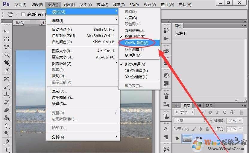 3、最后,选择CMYK颜色选项,更改颜色模式。
