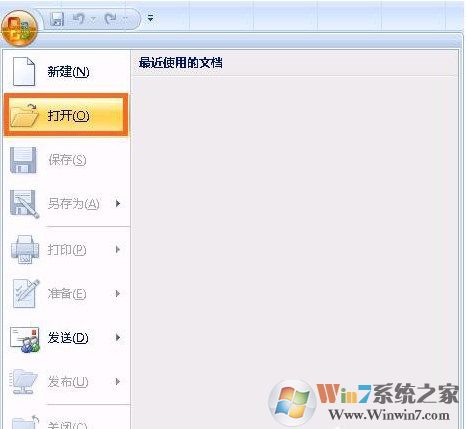 1、启动Excel,点击左上角的OFFICE 图标,选“打开”。