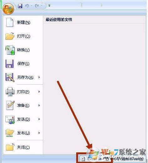 1、启动Excel,点击左上角的OFFICE 图标,选右下角“Excel选项”。