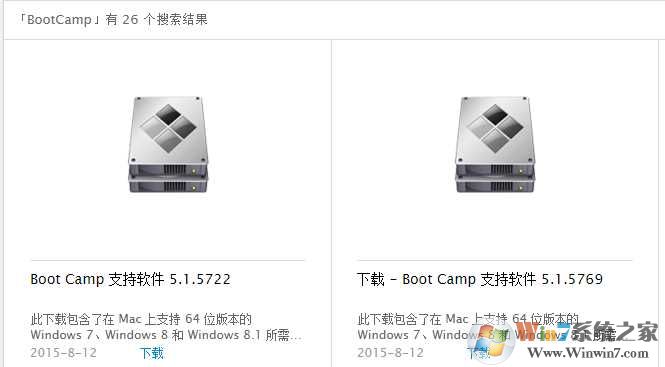 上面这个链接没有的话 可以打开https://support.apple.com/zh-cn/HT205016 针对自己的笔记本生产日期来下载相应的boot camp 软件,Win7一般用 版本5 不过不是每一个都能用的。