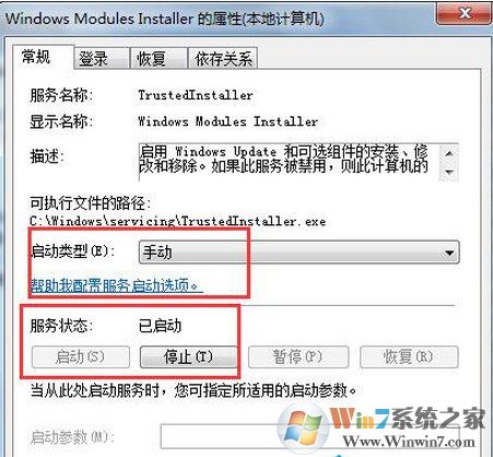 3、 如果Windows Modules Installer服务被禁用,我们必须把它更改为启用 - 手动,重启计算机,再安装应用程序。