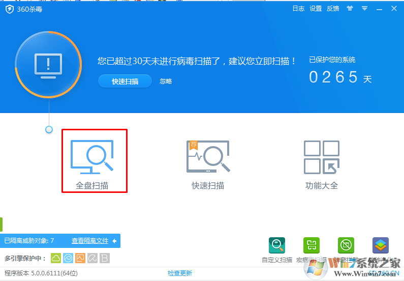 5、如果以上的方法试了还是不可以的话就是使用360或者别的杀毒软件全盘查杀,有时候可能是游戏安全软件真的检测到病毒或者木马了