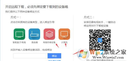 这时会弹出网页,进入个人的迅雷下载中心,提示两种绑定方式,我可没有什么盒子之类的,还是选择电脑吧。