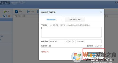 4、然后点击“新建”下载任务,然后输入下载URL链接,点击选择下载设备为我们刚才绑定的电脑就行啦,但是切记:电脑必须处于开机,且迅雷软件处于开启状态,并且登陆了迅雷账号才可以。