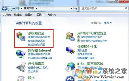 1、依次点击“开始/控制面板”菜单,在打开的控制面板窗口中点击“系统和安全”图标。如图所示: