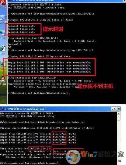 一般采用ping ip地址或者域名 后面还加个“-t” 就会连续检测。比如线路直接不插就是前面提示的找不到主机,连不上就是超时,time越大就是响应越慢,Lost是丢包的情况,有丢包的情况,也就是连通性不好,老司机都用这个来检查网络效果,如图: