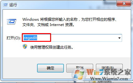 1、点电脑桌面左下角的开始菜单,在运行内输入regedit打开注册表,如图;