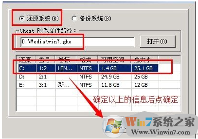我的gho文件是拷贝到的路径是:D:\media\win7.gho