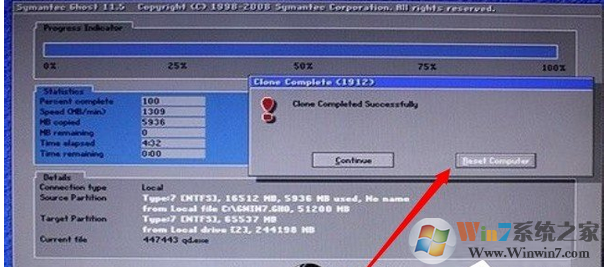 4、还原文件完成后点击“reset computer ”提示重启你的电脑。