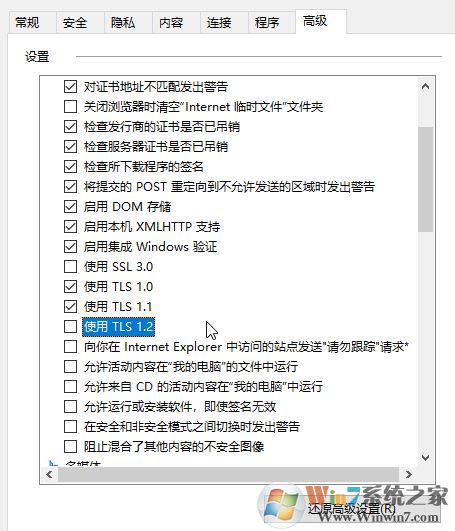 3、在高级下面找到【使用 TLS 1.2】选项,将该选项的勾去掉,点击确定保存设置即可!