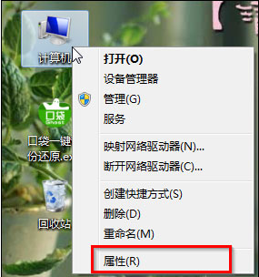 1、选中桌面上的“计算机”→鼠标右键→选择“属性”,如图4所示:
