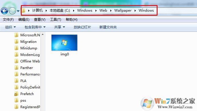 打开计算机。找到C:\Windows\Web\Wallpaper\Windows,或者直接复制这个地址到搜索栏里回车即可