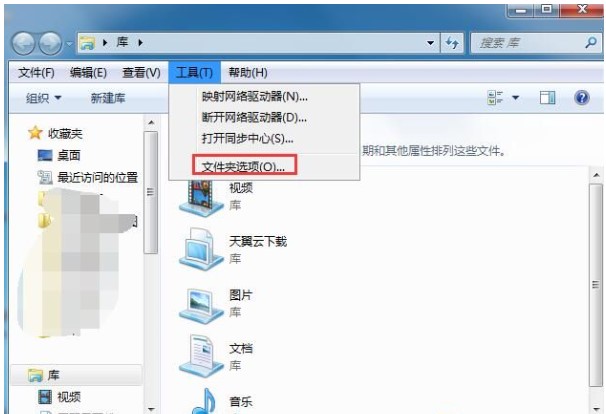 Win7:打开任意一个文件夹,然后点击工具—文件夹选项;