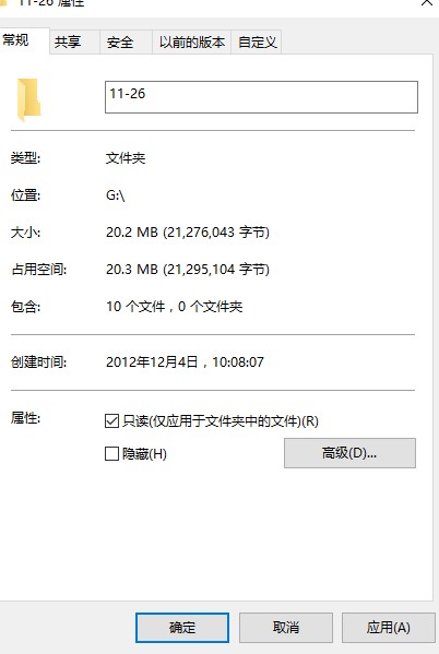 3、点击应用后隐藏的文件夹就会出现,然后右键文件夹选着属性,把最下面一栏的隐藏属性去除选着只读,点击应用即可