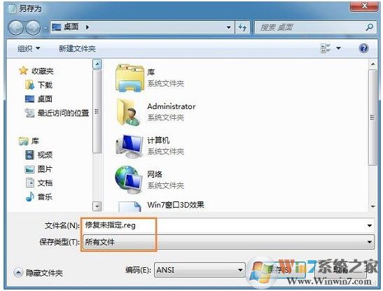 3、在界面中,重命名文件夹,后缀为.reg,保存类型为所有文件,如图所示:
