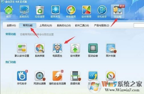 1、小编这里用的是金山卫士的电脑医生解决的,打开金山卫士;