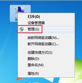 1. 右键点击桌面上的“计算机”图标,在右键菜单中点击“管理”:
