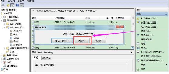8. 如果不想让其他人通过这种操作方式查看到电脑的使用记录,可以在右方操作模块选择“清除日志”,在跳出弹框中选择“清除”即可: