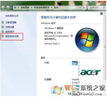 1、首先右键点击桌面计算机图标,选择属性,然后在弹出的窗口中,点击左侧的“高级系统设置”,如图所示: