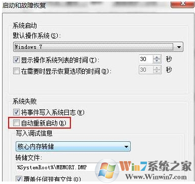 3、接着取消勾选“自动重新启动”,点击确定,如图所示: