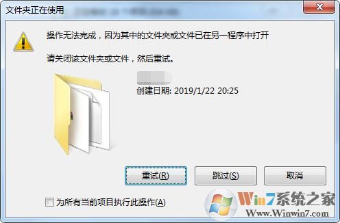 Win7文件夹正在使用, 无法移动剪切解决方法