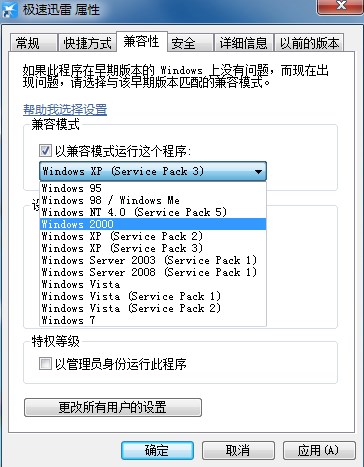 4,选择最适合运行这个程序的系统模式,具体哪个最合适因为程序千千万,小编不可能写完,大家自己百度,如果百度没有大家就每个都试一遍如果没有就只能坐等程序自己更新了,或者向程序官网反应这个问题,以达到最快的解决速度