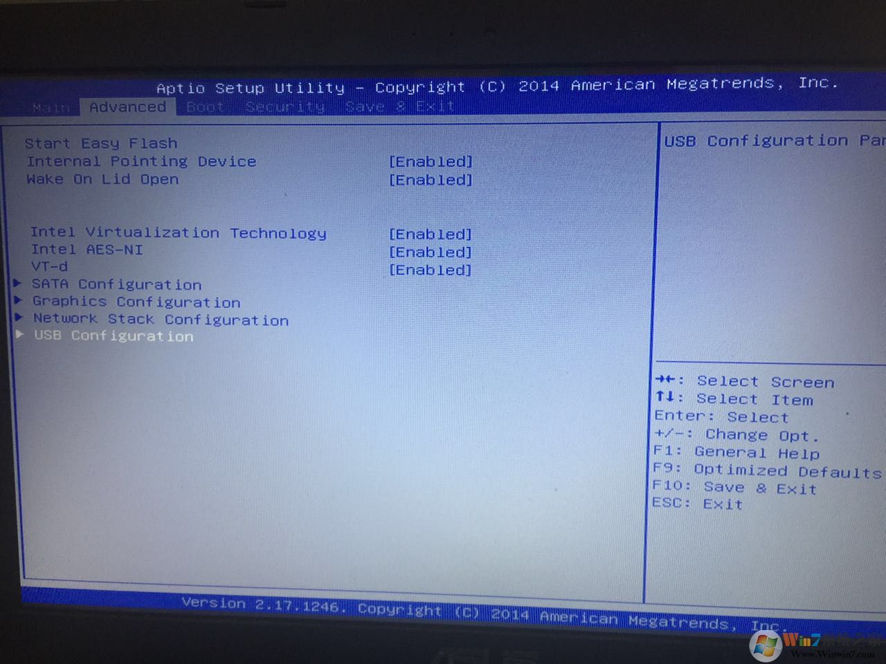 2、打开进入bios界面后,如果有看见语言选项的就先选择为中文操作界面,这里小编就以英文版的为介绍了,我们需要找到usb选项,如下图这个选项,如果不一样的找到USB开头字样的进入看看
