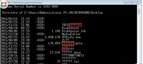 设置完成后确定,再回到命令提示符界面可以发现,问号和方框都可以正常显示为中文了,