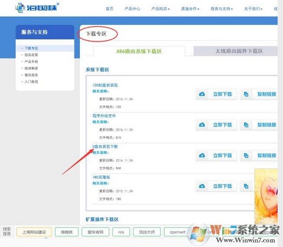 把旧电脑重新安装一下系统,在百度上搜索一下“海蜘蛛官网”进入下载中心。在这里我推荐下载“X86路由系统下载专区”里面的U盘安装包下载。