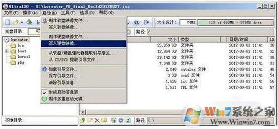 下载并运行UltraISO,选择下载过的海蜘蛛文件,选择“启动--写入磁盘镜像”