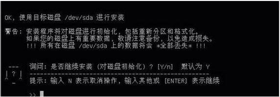 提示初始化磁盘输入Y,按回车确认。