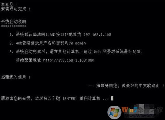 选择“1.安装海蜘蛛路由系统”