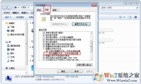 1、首先我们要把系统设置下显示隐藏文件和文件夹;(文件夹——》工具——文件夹选项中)