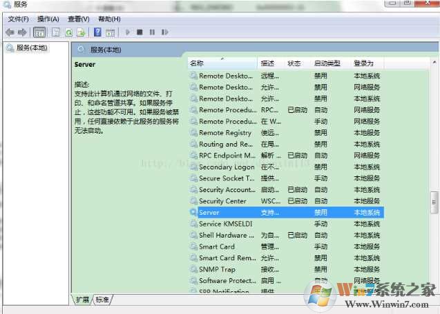 依次点击“开始”,“运行”,输入services.msc,进入服务管理控制台。然后,找到server服务,双击进入管理控制页面。把这个