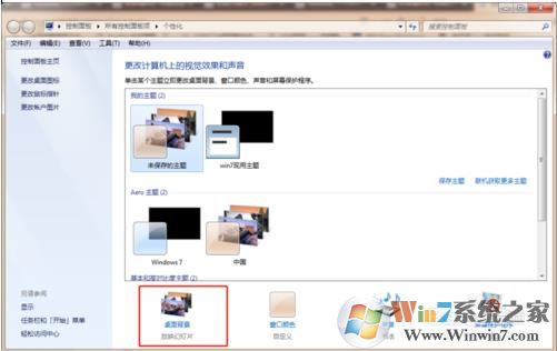 2、然后我们在下面找到【桌面背景】,点击,如下面这个图