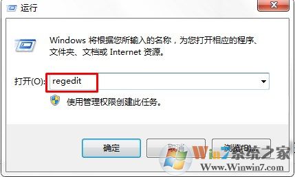 1、运用Win+R组合键调出运行对话框,然后在运行窗口中输入regedit命令打开注册表编辑器;