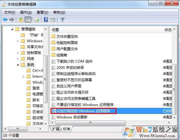 2、然后我们可以在 用户配置-管理模板-系统”,看到“只运行指定的windows应用程序”选项,双击他;xiuchufang.com