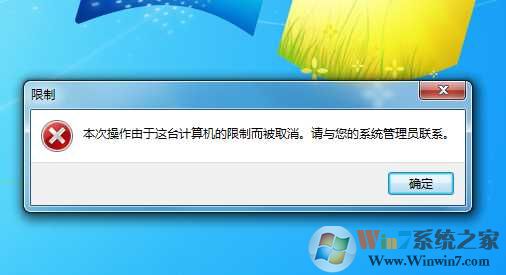 最近有一个朋友反映电脑给别人用过之后,再用什么都打不开了,不管打开什么都会出现提示“本次操作由于这台计算机的限制而被取消。请与你的系统管理员联系”如下图。