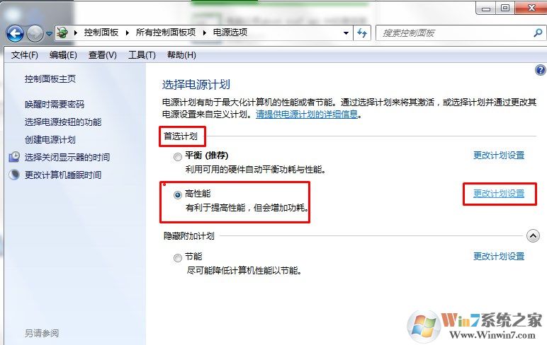 4、在弹出来的页面中选择点击左侧的“更改计划设置”项;