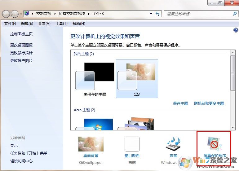 2、然后在弹出来的个性化页面中选择“屏幕保护程序”;