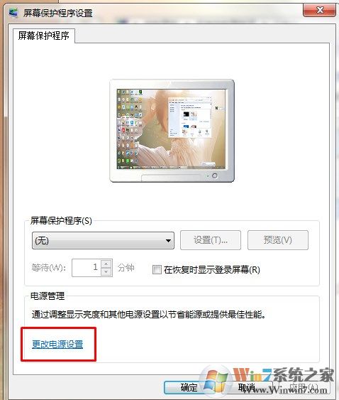 3、接着会弹出屏幕保护程序设置窗口,选择下方的“更改电源设置”;