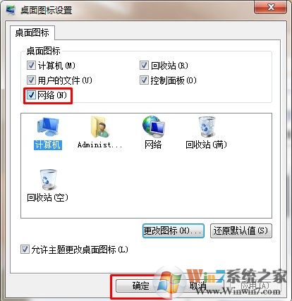 3、将上面能看见的桌面图标全部勾选,然后点击确定即可