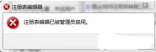 6、我们运行一下注册表试试,系统就会弹出:注册表编辑已被管理员禁用;