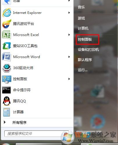 1、点击开始菜单、打开控制面板