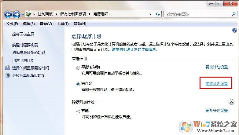 3、选择当前的电源方案然后点击更改设置