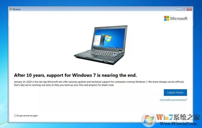 “经过10年的服务,2020年1月14日是微软为运行Windows 7 SP1的计算机提供安全更新的最后一天,安装此更新会启用有关Windows 7支持的提醒。”官方知识库这样描述这个补丁。