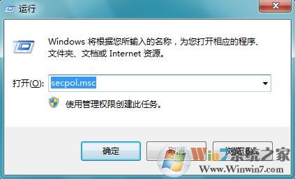 1、 按“Win+R”打开“运行”窗口,输入“secpol.msc”命令后按回车,打开本地安全设置窗口。